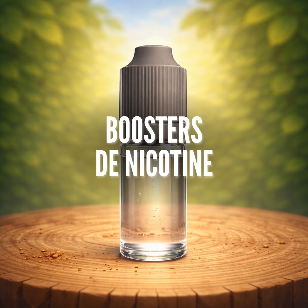 Un booster permet d’ajouter de la nicotine à un grand format ( 50ml, 100ml ). Il aide à adapter le dosage sans changer la saveur.